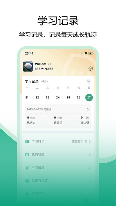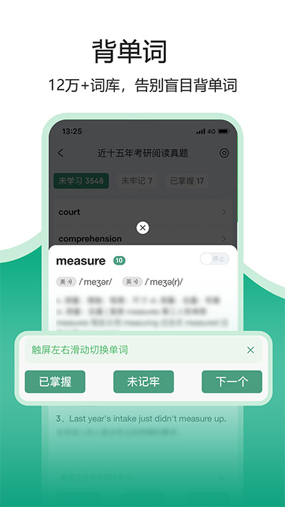相应的阶段单词学习分类:未学习,已掌握、未牢记;阶段单词掌握情况一目了然,不用盲目背单词。